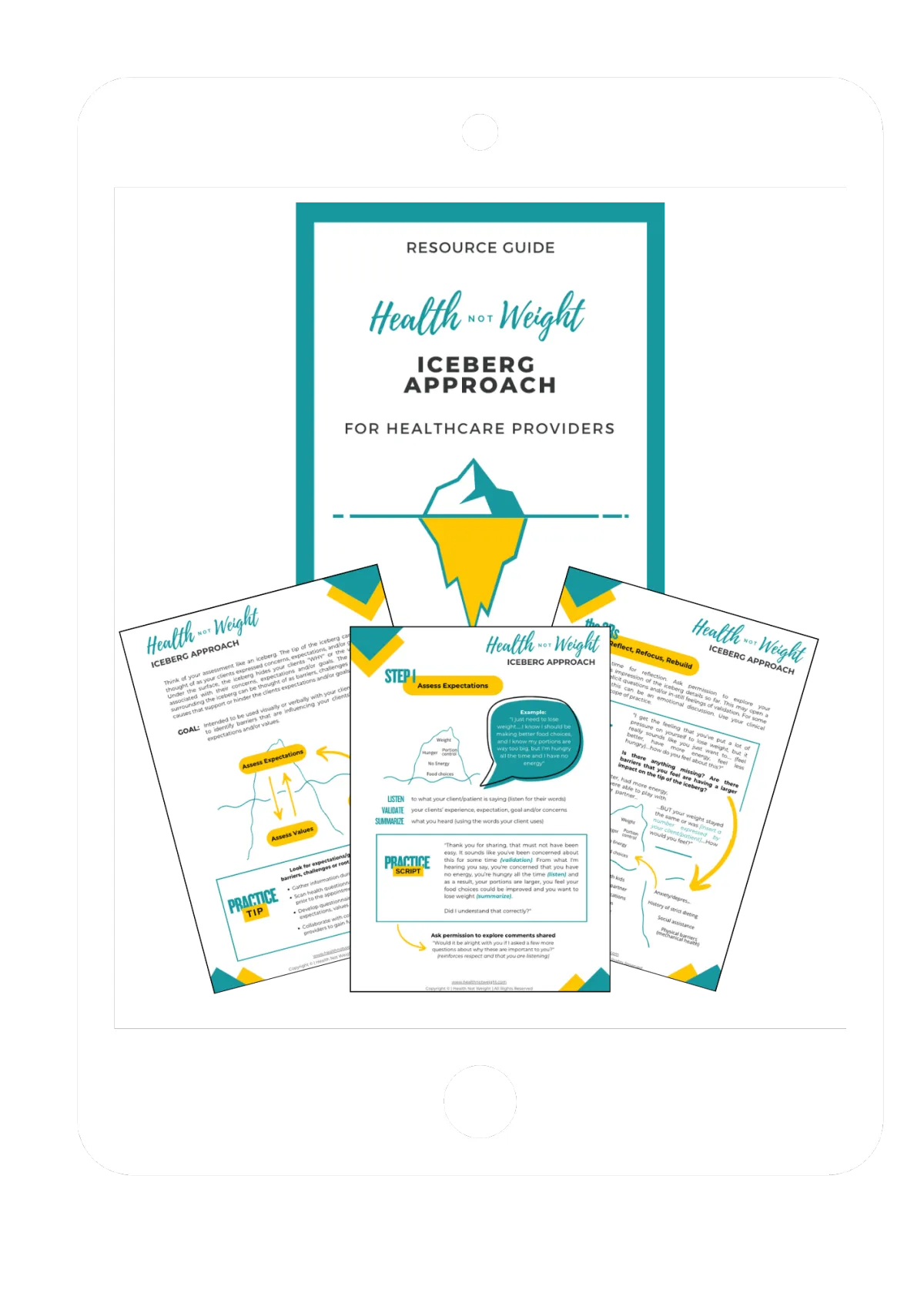 If you’re finding it hard to support clients constantly focused on weight loss outcomes, blaming themselves for gaining weight or practicing harmful behaviours to control their weight, download the Health Not Weight Iceberg Approach to use in practice.